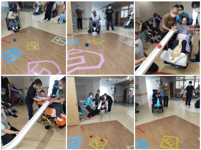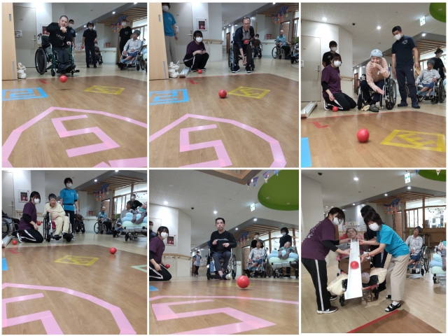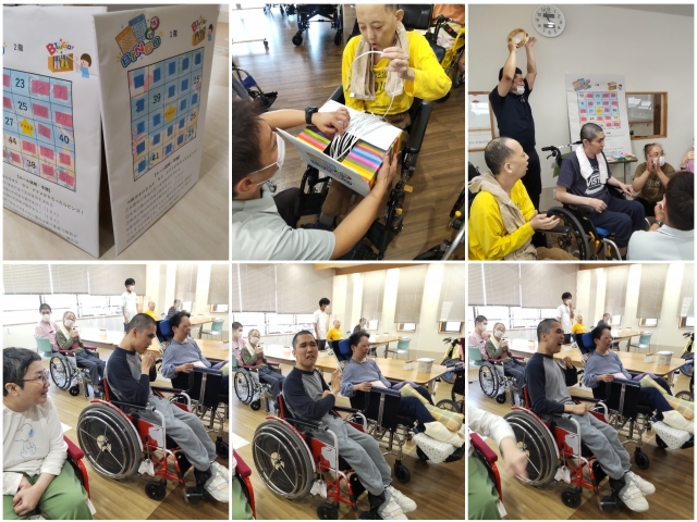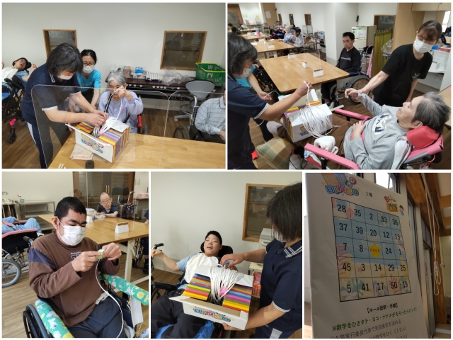 「転がしボッチャ」では、大半の方が高得点狙いで投球していました。「ビンゴ」では、利用者が数字くじをひき、数字がアナウンスされる度に一喜一憂…。