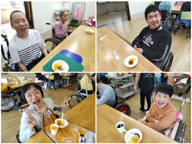 午後からは、「大玉運び」と「ジェスチャーゲーム」を行いました。またゲーム待機の間にはカフェタイムでプリンアラモードとドリンクが提供されました。
