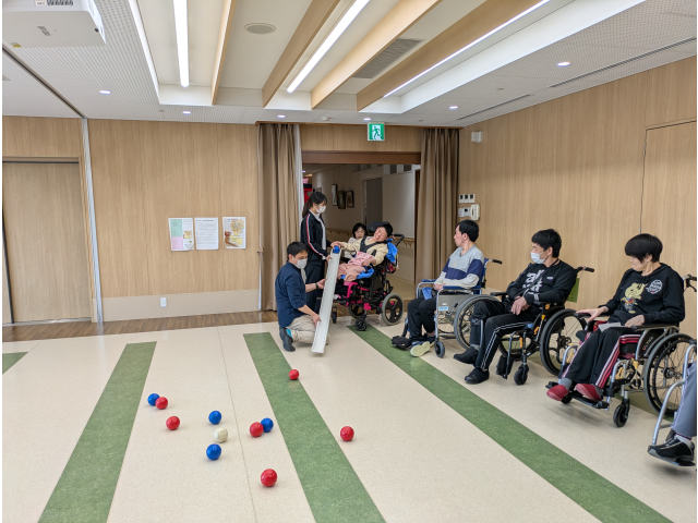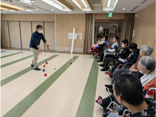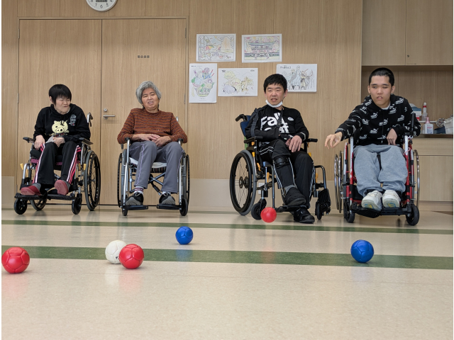 今日はボッチャを行いました!レクリエーションとして楽しめるよう、ゆる~いルールで自由に投球します😊狙いを定めて慎重に力加減を調節!ジャッジボールの隣にピタッと張り付く絶妙ショット!別のボールに当ててからジャッジボールに近づけるミラクルショット!思い思いに楽しむことができました。ボッチャ大会優勝を目指して練習頑張ります!🏆