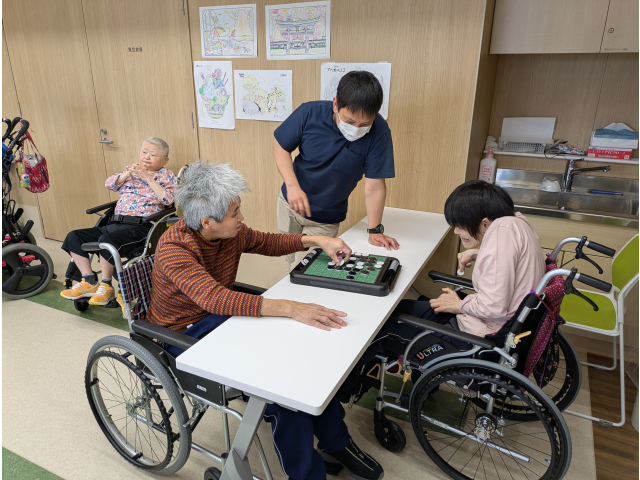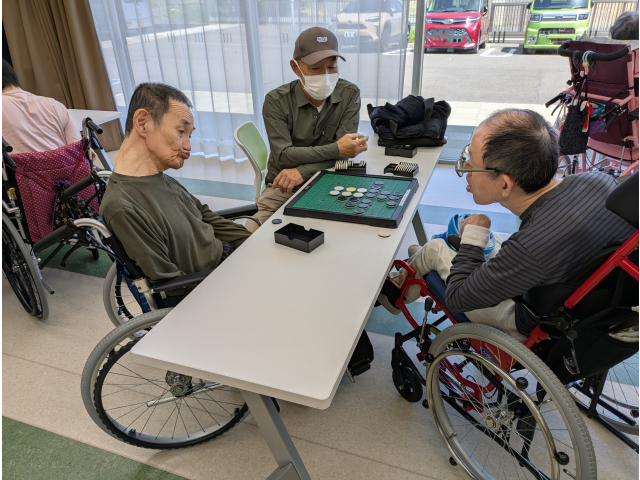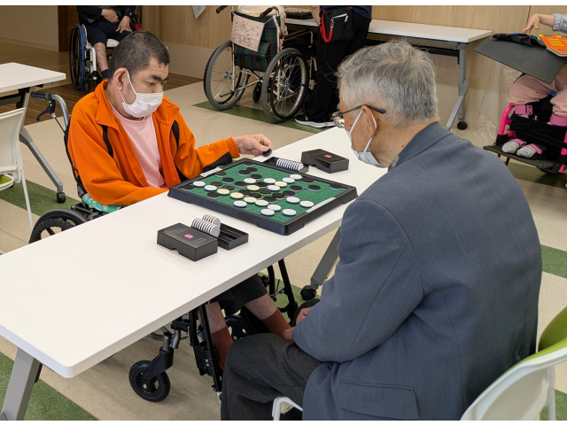 はなのきでは1ヶ月に2回、地域の民生委員の方がオセロ活動に〇● ボランティアできてくださり対戦をしております🌷🌼