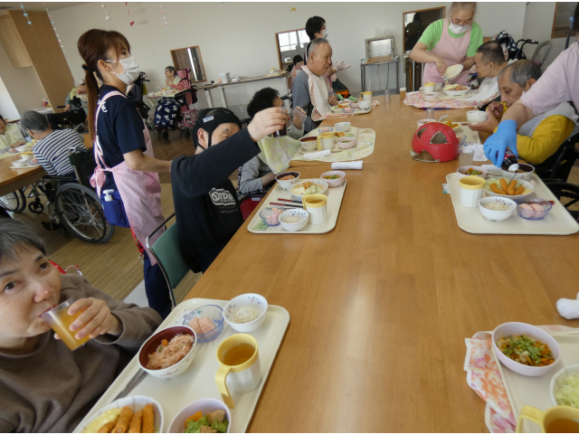 誕生者だけでなく、みんなでお祝いを含めて食事を楽しんでもらえています🎈