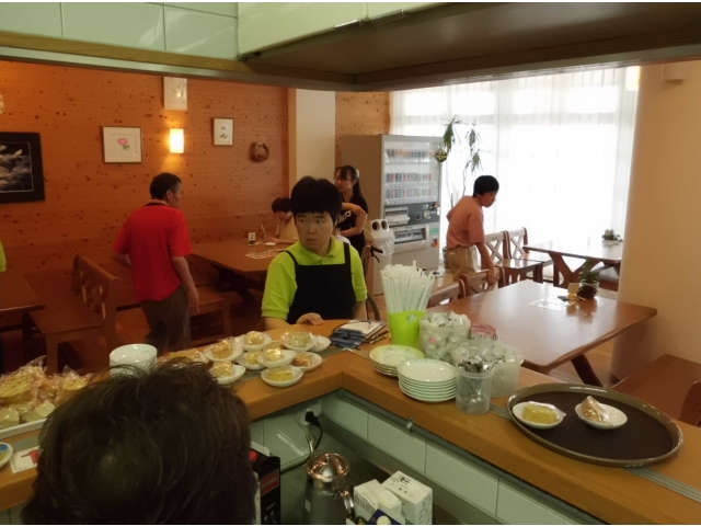 毎週、月曜・金曜(午前・午後)、火曜・木曜(午後)に営業しています。マスターは利用者が交替してやり、所長、次長、生活支援班長も交代で加わって、明るく元気にやっています。