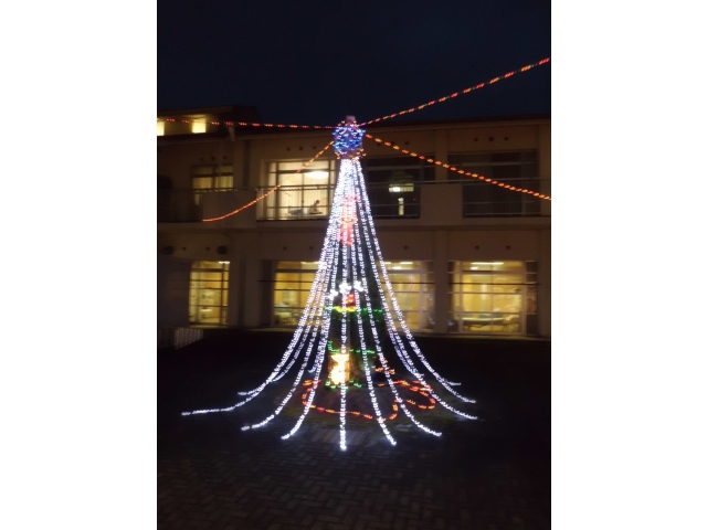 先日、半田の里にもクリスマスイルミネーションが、中庭にある一本の木に飾りつけられました。