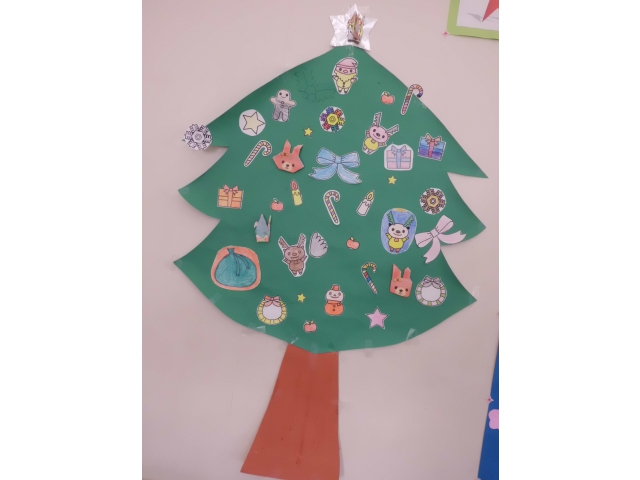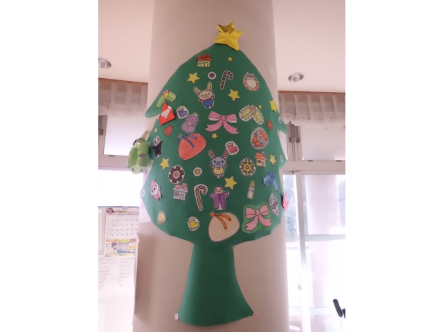 二階プレイルームにも、利用者の皆さんで作ったクリスマスツリーが飾られています。