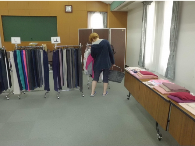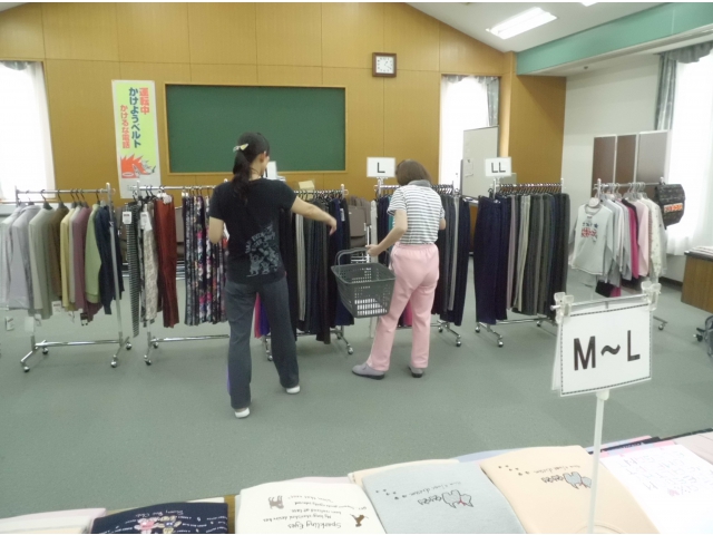 年3回、施設の会議室を利用して衣類販売があります。衣類販売当日は特に女性の利用者様は朝からワクワクされていて何度も職員に衣類販売の事を尋ねられていました。