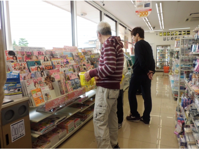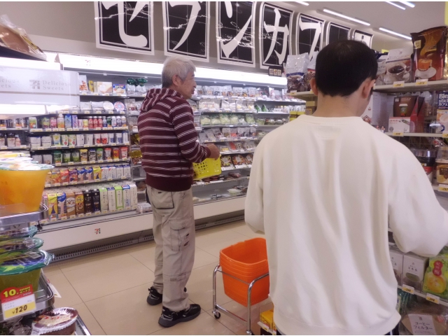 コンビニではお菓子や飲み物、雑誌などを選んで購入され、途中の公園や施設に戻り飲食を楽しまれています。