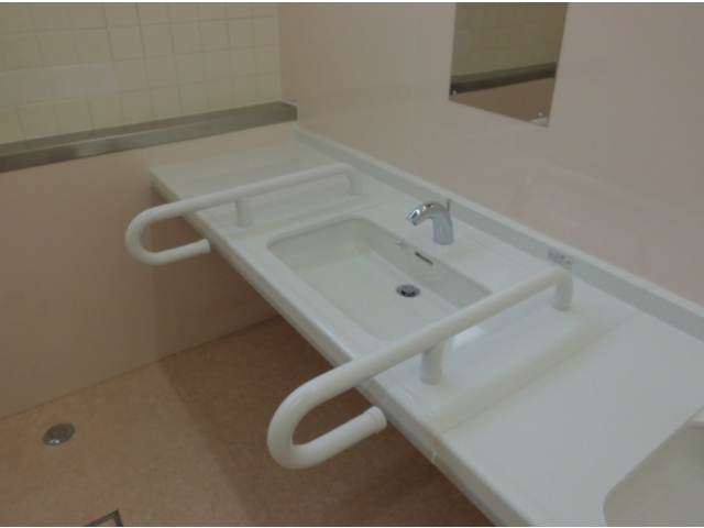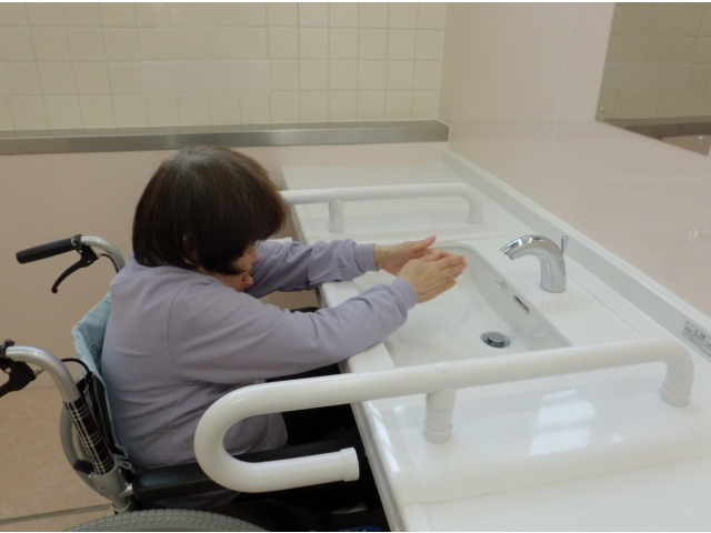 昨年度末に女性トイレの改修工事がおこなわれ、利用者のかたにとって気持ちのいい環境になりました。手洗い場も手すりが付いたり、一部に自動水栓を設置したりと車椅子で座ったままでも利用しやすい環境になりました。