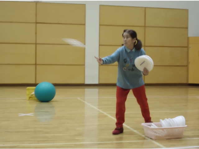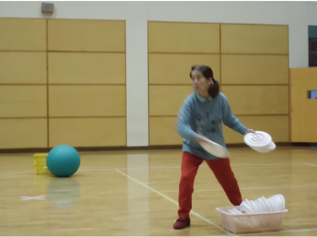フライングディスクは毎年大会に参加しているので利用者は一生懸命行っています。