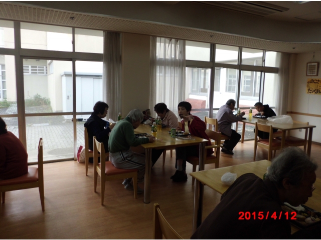 昼食は、皆さんお弁当を桜の木の下や食堂などで、どの利用者様も保護者様も美味しそうに食べていました。