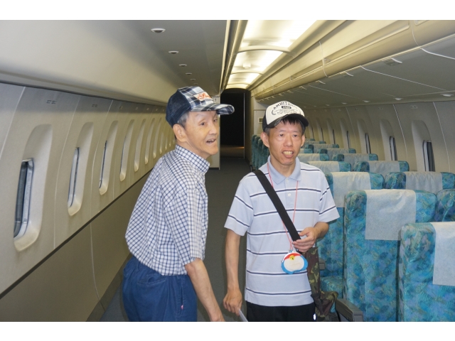 建物の中に入ると新幹線や機関車など、様々な車両が並んでいました。利用者の皆様に写真撮影をすることを伝えると嬉しそうに車両の前に並んで写真を撮っていました。