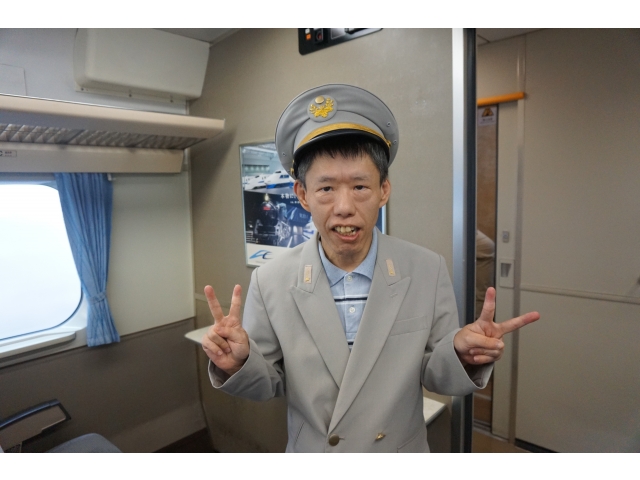 お弁当を食べた後は、電車の運転席に入って、車掌さんの服を着て記念撮影をしました♪
