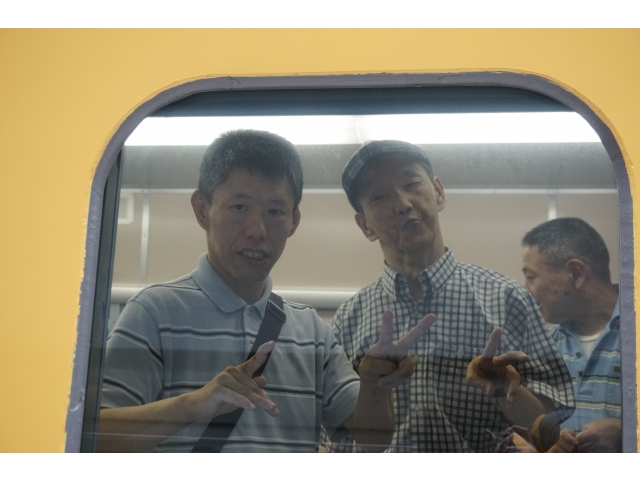 写真撮影後は車両の中を見学したり、改札口の仕組みや電車の構造などを真剣に見ていました。