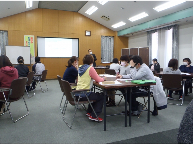 愛フルタウン合同職場研修とは、隣接する3施設(半田の里、新生寮、ならわ学園)に共通するテーマで同じ講師による研修を異なる日程で開催し、相互に出席することでより多くの職員の受講を可能にするものです。今年度は「社会力・人間力の向上」をテーマで実施し、初回となる半田の里会場では、3施設合計32名の職員が受講しました。