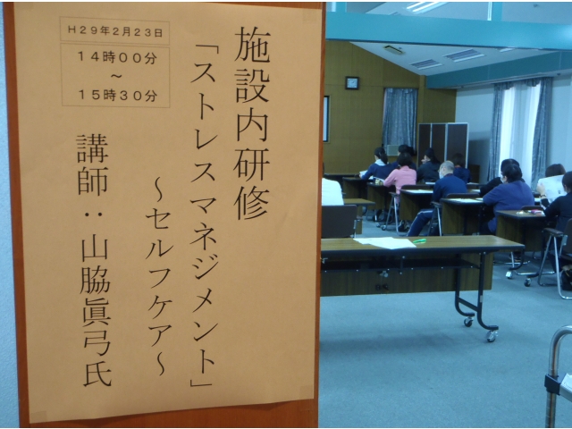 平成29年2月23日(木)にストレスマネジメント~セルフケア~をテーマに職場研修を開催しました。