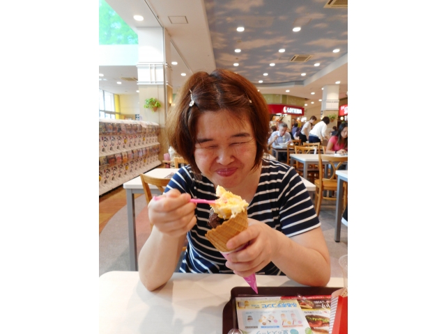 念願のハンバーガーやアイスクリームが食べることができて、満面の笑みです(^O^)