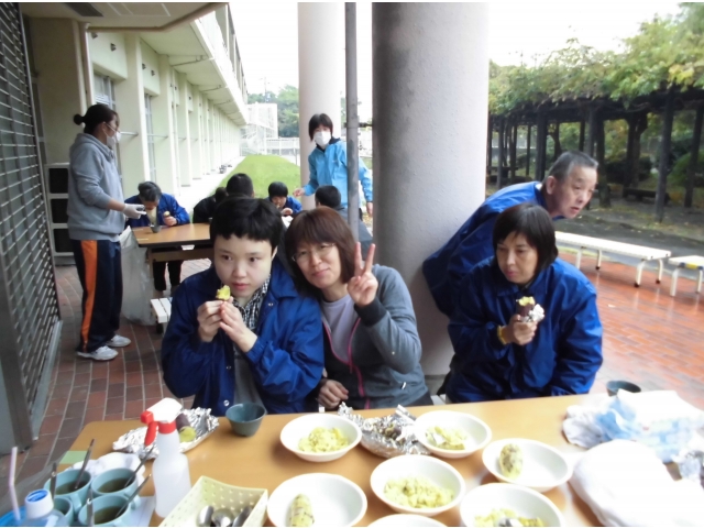 落ち葉の中から「大きいのがいいなぁ。」等と言いながら、自分で食べる焼き芋を楽しそうに選んでました。焼き芋はホクホクでとても美味しかったようです!