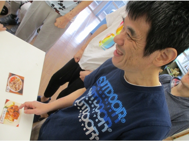 愛厚半田の里では月に2回、選択食で利用者様に好きなメニューを選んでもらう日があります。皆さんとても楽しみにしていて笑顔で選んでくれています。好きな物を食べて元気に過ごしてもらいたいですね。