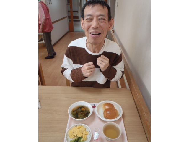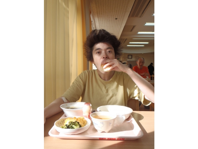 採血で涙を見せていた利用者様も、食堂ではモーニングを食べながら笑顔を見せてくれます。