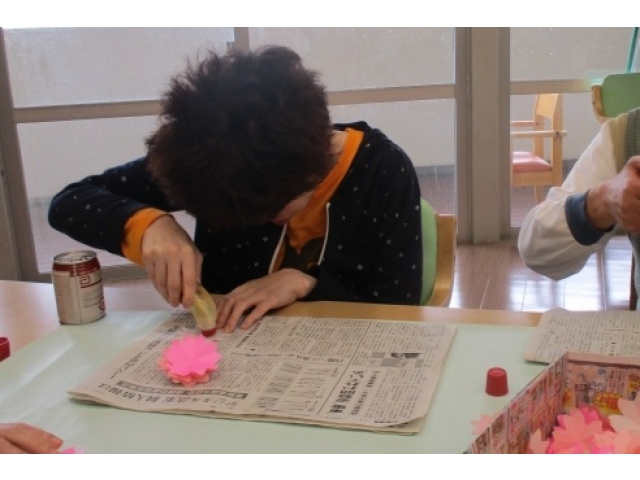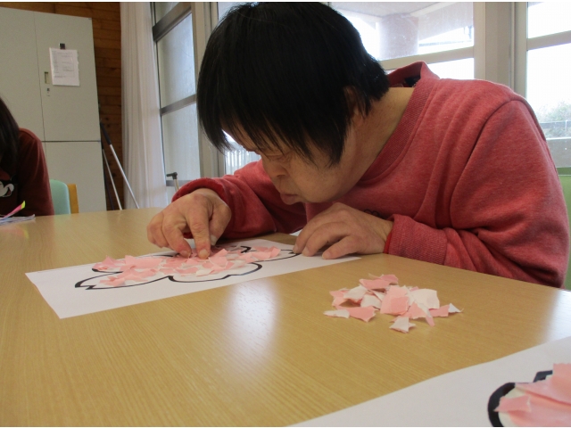 創作クラブで桜の花のちぎり絵や紙吹雪を作ってもらいました。