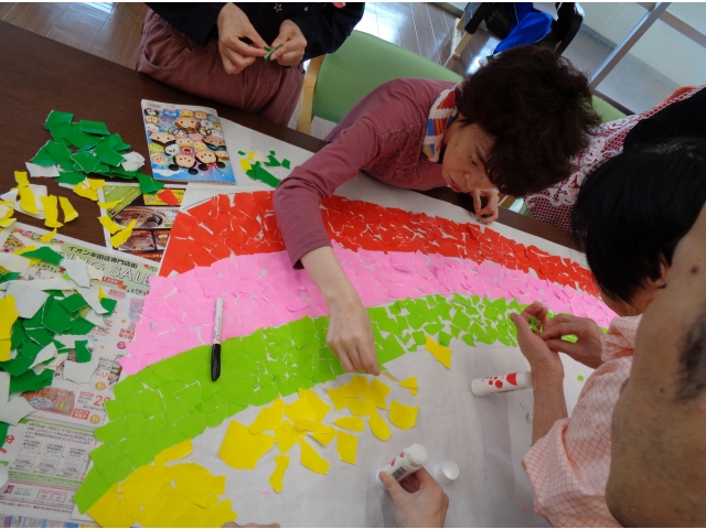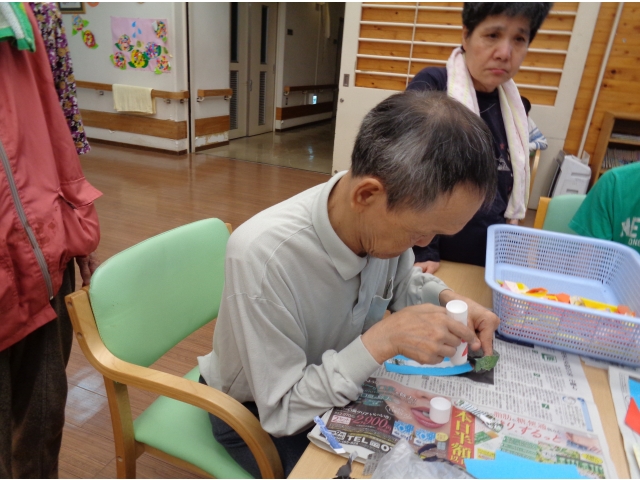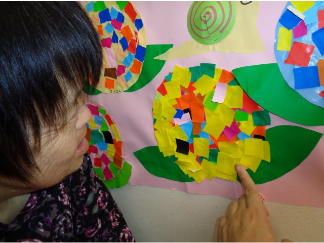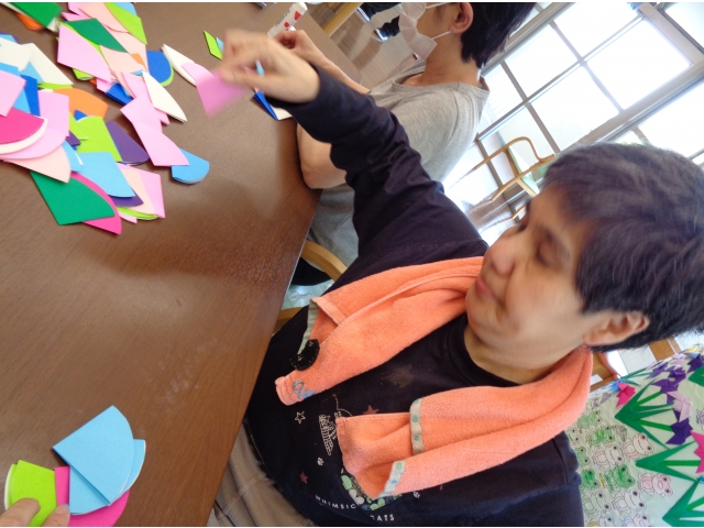 折り紙や貼り絵・ぬり絵をしながら少しずつ作品を増やしています。