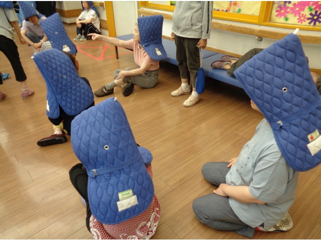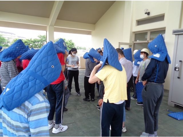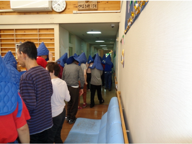 地震による火災の想定で避難訓練をおこないました🔥防災頭巾をかぶって避難!避難経路を全員で確認し無事終える事ができました☆