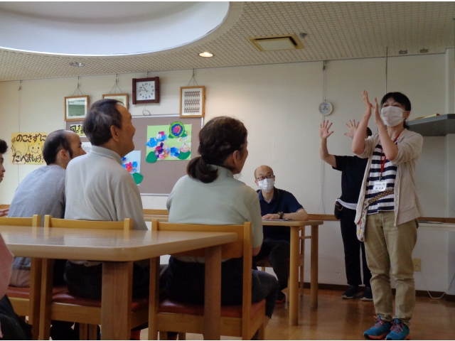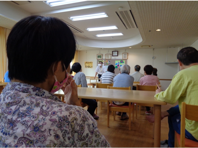 利用者懇談会では所長からの挨拶と今月の予定栄養士からの食中毒の予防・対策についてや利用者様からの要望や意見を聞きました★発言の場では利用者様は手を挙げて「お寿司、ピザが食べたい」などの要望やコロナウイルスが流行っている中で「家族が心配」との声も上がりました!
