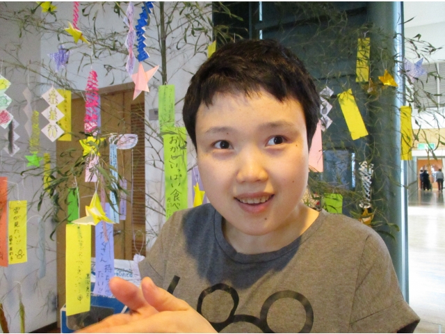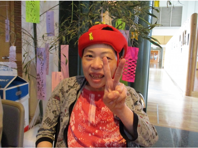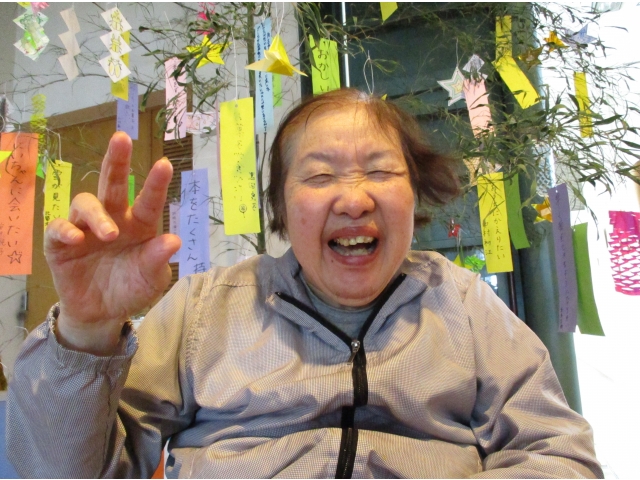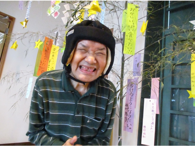 七月七日の七夕会に備え、短冊に利用者様それぞれの願い事を込めて書き込み、願いが叶うように竹に飾り付けをしてきました。