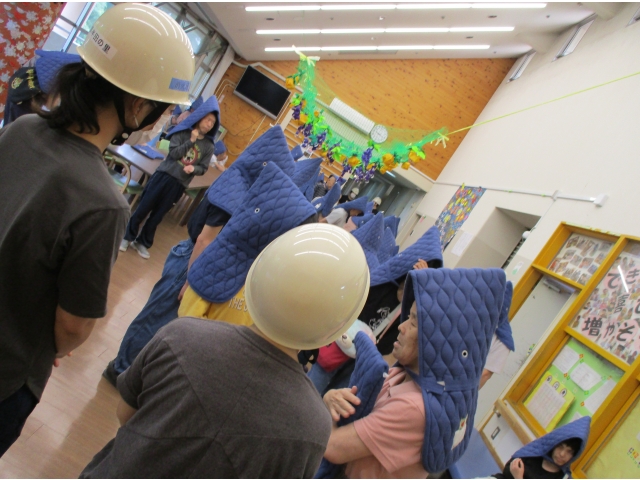 本日は、総合防災訓練の日でした!!地震による火災を想定した訓練を行いました❕地震直後は体を低くし、避難時は防災頭巾をかぶって速やかに避難することができました✨