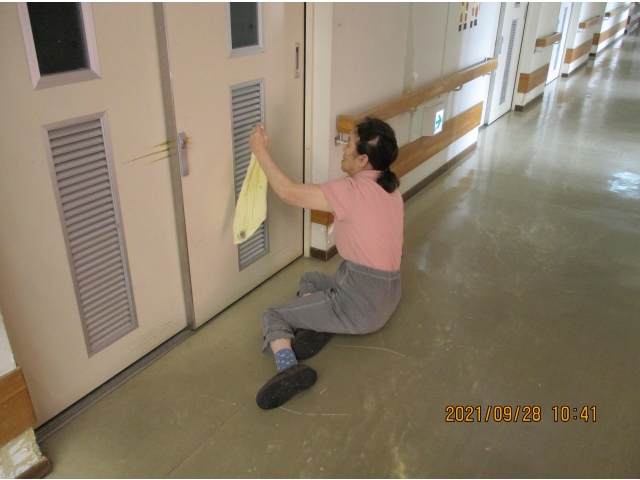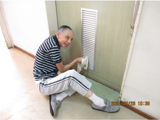 本日は班別活動の作業班でつばき町を掃除しました。皆様、いつも生活しているつばき町に感謝を込めてごしごしと頑張っています。