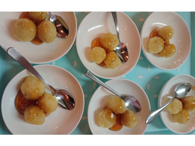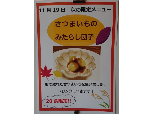 出来上がったおやつは、喫茶シエロで提供しました。とても優しい味で、秋を感じることができました♪