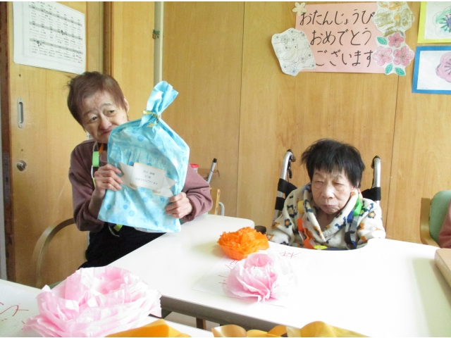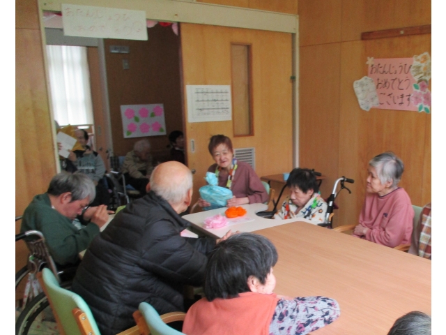 本日、1階でさくら町、つつじ町に分かれて3月生まれの利用者様のお祝いをしました🎉プレゼントを手渡されると、皆さん嬉しそうな表情を見せてくださいました🎁Happy birthday to you~♪を利用者様と職員みんなで歌い、とても盛り上がりました😊😊