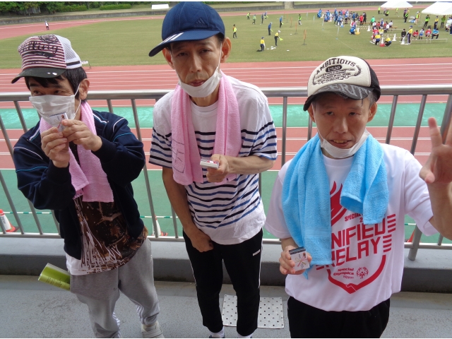 つばき町からはフライングディスクに3名、ケアホームからは1500m走に3名参加されました。皆さん当日を本当に楽しみにしておられ、最後にはいただいたメダルを嬉しそうに見せてくれました。