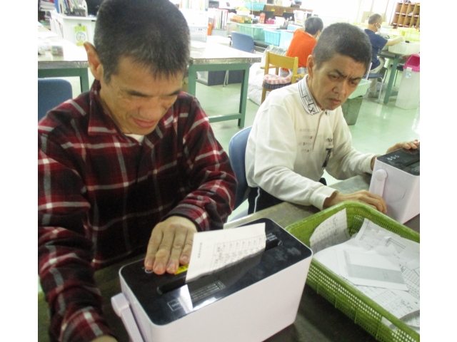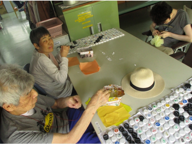 実習班の皆さんが活動している様子を写真に撮らせていただきました。活動中の利用者の皆さんは真剣に、けれど楽しく行っていました。