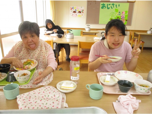 その後の昼食ではお肉・ケーキ等に皆さん舌鼓を打たれていました。