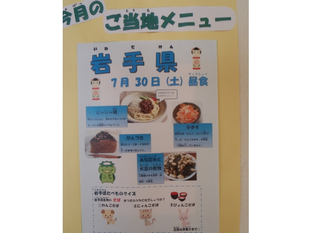 半田の里では、毎月全国のご当地メニューを提供しています。 7月のご当地メニューは、岩手県です😀