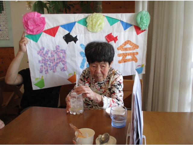 本格的に夏が始まり、気温も暑くなってきました。そのため半田の里では1階、2階それぞれで夏を楽しんで乗り越えてもらう為に納涼会を行いました。