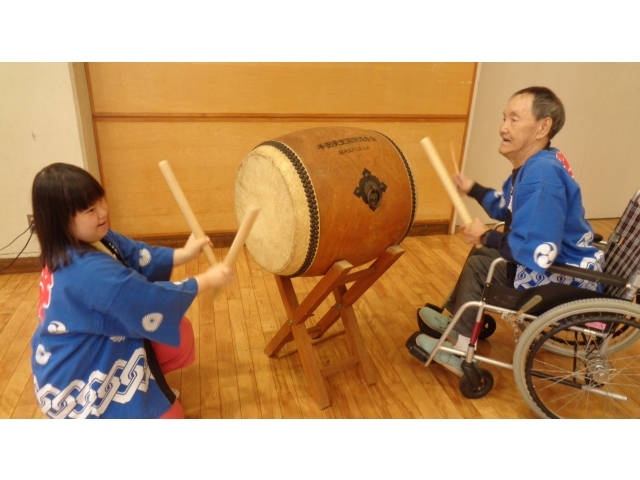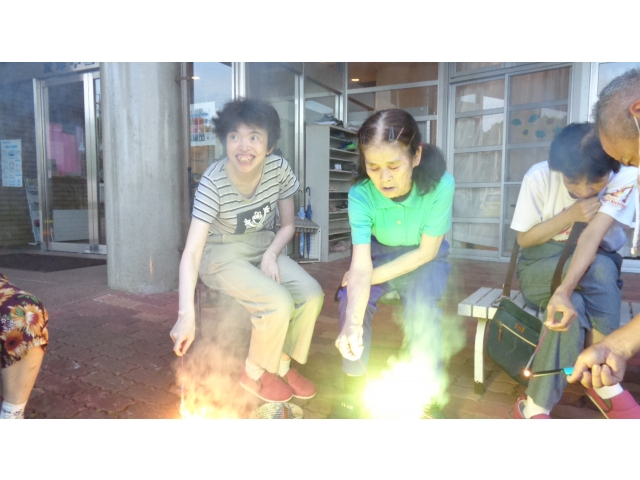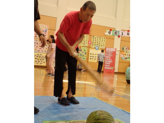 1階では喫茶シエロでジェラートを食べ、帰りに職員お手製の玉入れを行いました。2階では太鼓、スイカ割り、花火を楽しみました