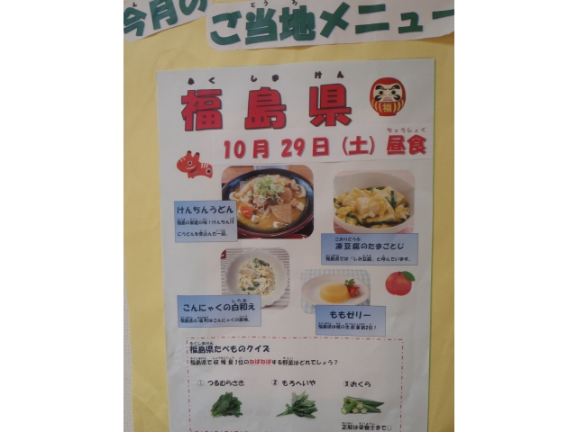半田の里では、毎月全国のご当地メニューを提供しています。10月のご当地メニューは、福島県です🍑