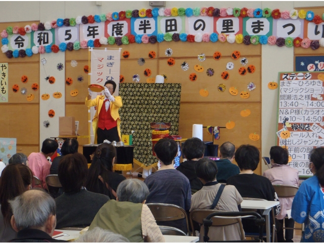 今年度は「魚釣り」「ボール入れ」「後出しじゃんけん」の模擬店と、ステージ企画として、「まぎ~ひろゆき」様によるマジックショーと「N&P」様による利用者様とのカラオケ生演奏を行なっていただき、里まつりを盛り上げていただきました。