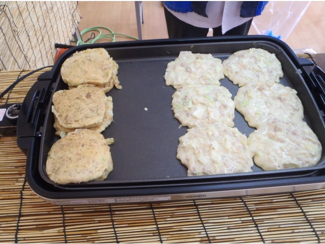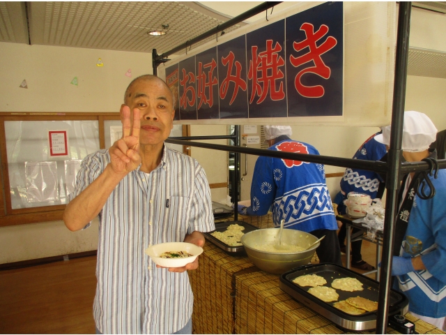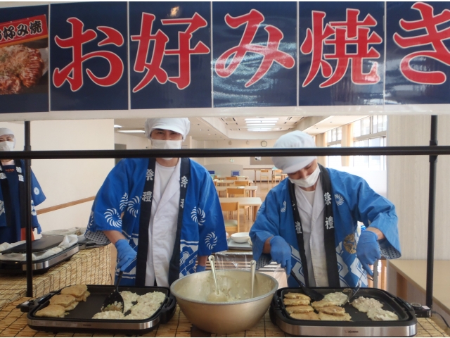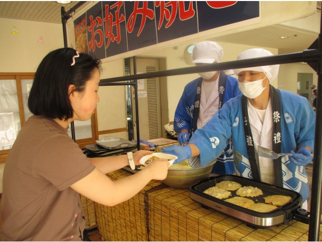 行事食でお好み焼き屋台を行いました。鉄板で焼いた、熱々のお好み焼きを提供しました😆