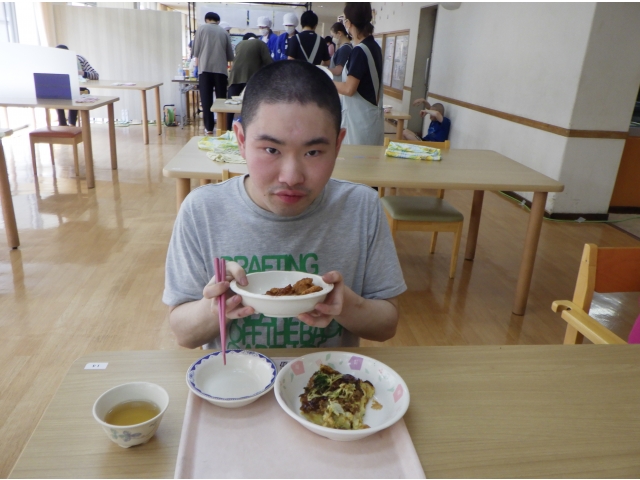食堂中にいい香りが広がり、食欲をそそります🩷普段小食の方も、真っ先にお好み焼きに手が伸びていました!