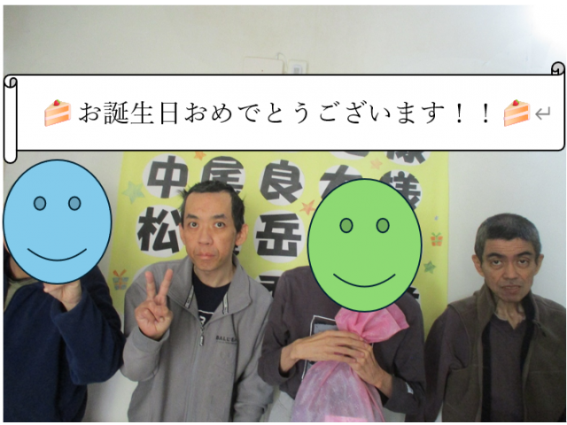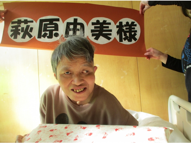 日に日に寒さも増してきた今日この頃。12月の誕生会を実施しました。 今月は施設内でコロナウィルスが発生してしまった影響もあり、フロアごとに分かれての実施となりました。簡易的なものとなってしまいましたが、それでも今月お誕生日を迎えられた皆様はプレゼントを受け取り、うれしそうな表情をされていました。 また一同に集まってゲームを交え盛大に行うことができるよう、職員一同頑張っていきます。