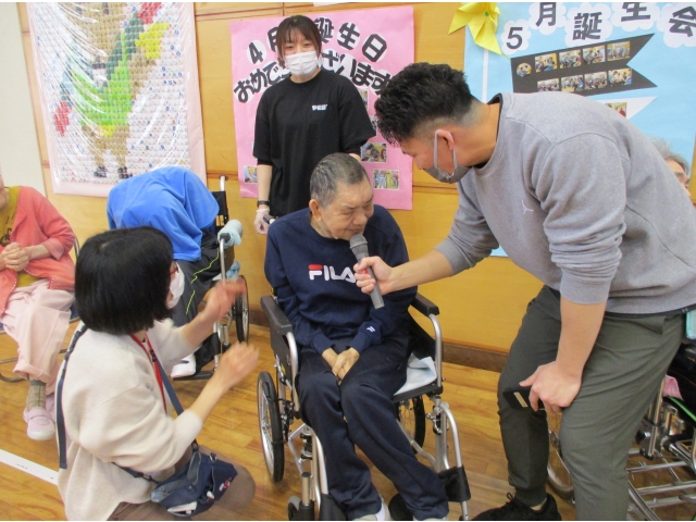 途中感染症対応の為フロアごとに行った月もありましたが、最後はしっかり全員でお祝いすることができて良かったです。
