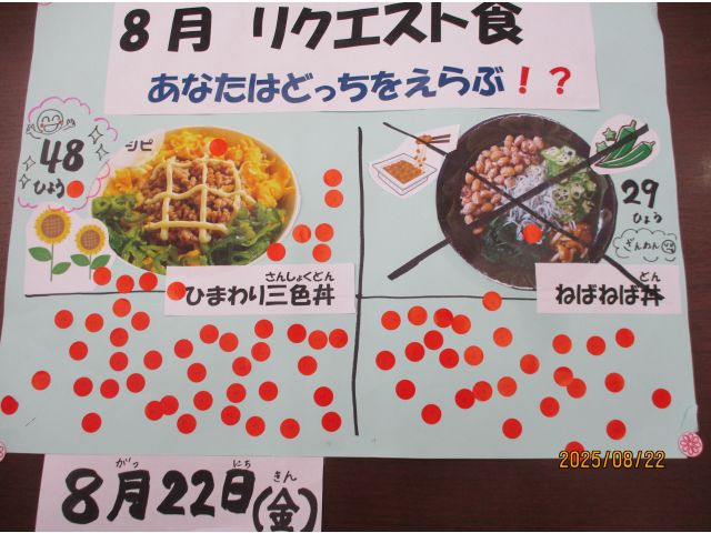 8月は ひまわり三食丼 vs ねばねば丼 です。