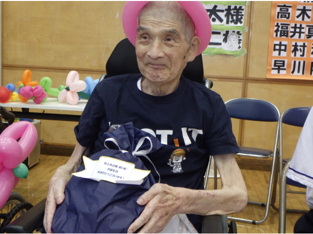 まだまだ暑い時期が続くこの日、今月9月に誕生日を迎えられた方と、今年長寿祝いを迎えられる方のお祝いの会を実施しました。