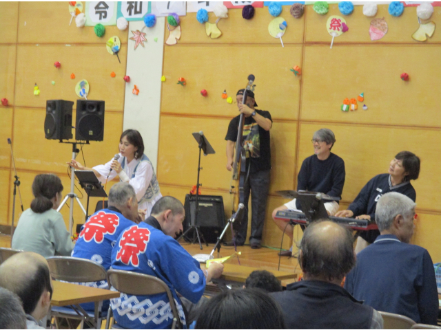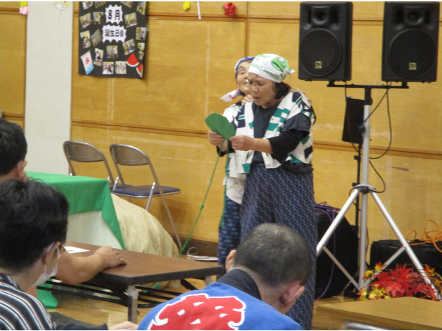 今年度の半田の里まつりのステージでは、石崎旭様による歌唱、いっぷく座様による人形パフォーマンスと二人芝居、JUKE-BOX様による楽器演奏・歌唱と、3組のボランティアの方々がパフォーマンスをしてくださり、利用者様も一緒に歌ったり手拍子をしたりと盛り上がりました。