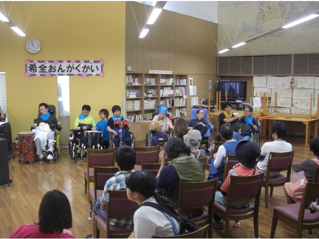 焼きそば・揚げパン始め5品の模擬店、例年好評の野点、作品展、バザ-、音楽療法発表会も行いました。