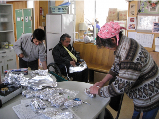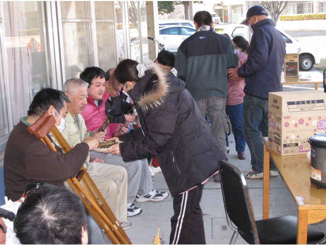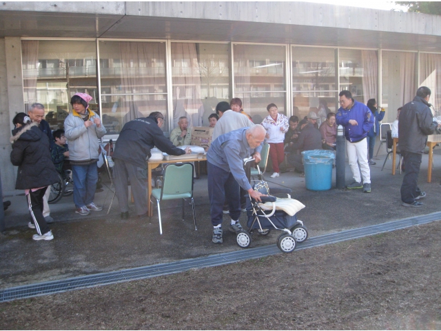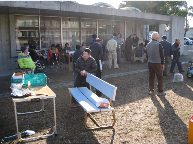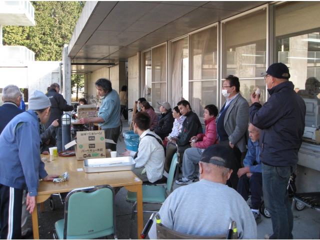 自由参加で、利用者39名・職員8名が、焼き芋・焼き鳥・甘酒・ジュ-スを楽しみました。元職員もボランティアとして参加され、会話が弾みました。