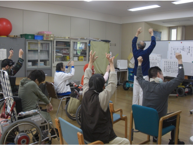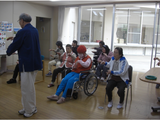初めての「車いす太極拳」に、利用者の皆様も職員も興味しんしんです。