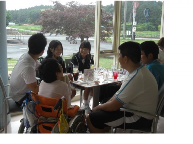 利用者様のひとりから部活動について聞かれ、「私は吹奏楽部」「僕は卓球部」と話が弾み、利用者様も「私は水泳部だったよ」と中学生時代を思い出しておられました。